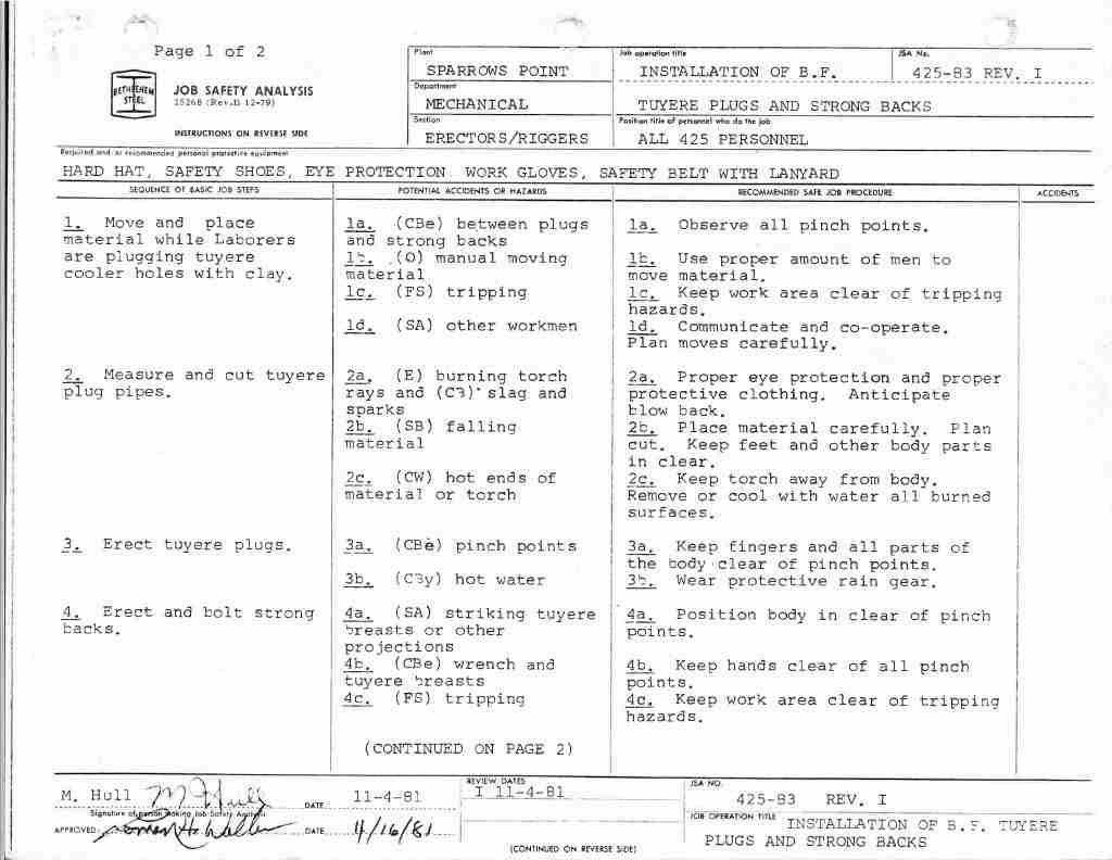 - The second page of the job safety analysis report. There are many of these in the BMI’s collection and many of them are more detailed than this one.