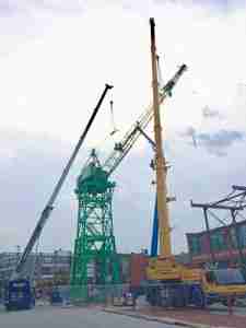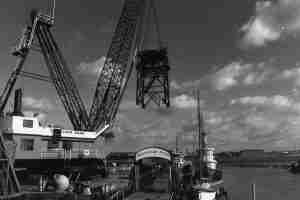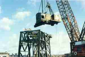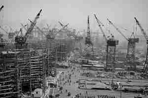 Unlike many of its counterparts, this particular crane’s service continued long after peace was restored. Following World War II, it was transferred to Bethlehem Steel’s Key Highway shipyard. In an unprecedented experimental project in 1951, the crane helped “jumboize” a former Victory war ship for commercial use. This process involved adding a large midsection to the ship, and its historic success paved the way for many similar projects.