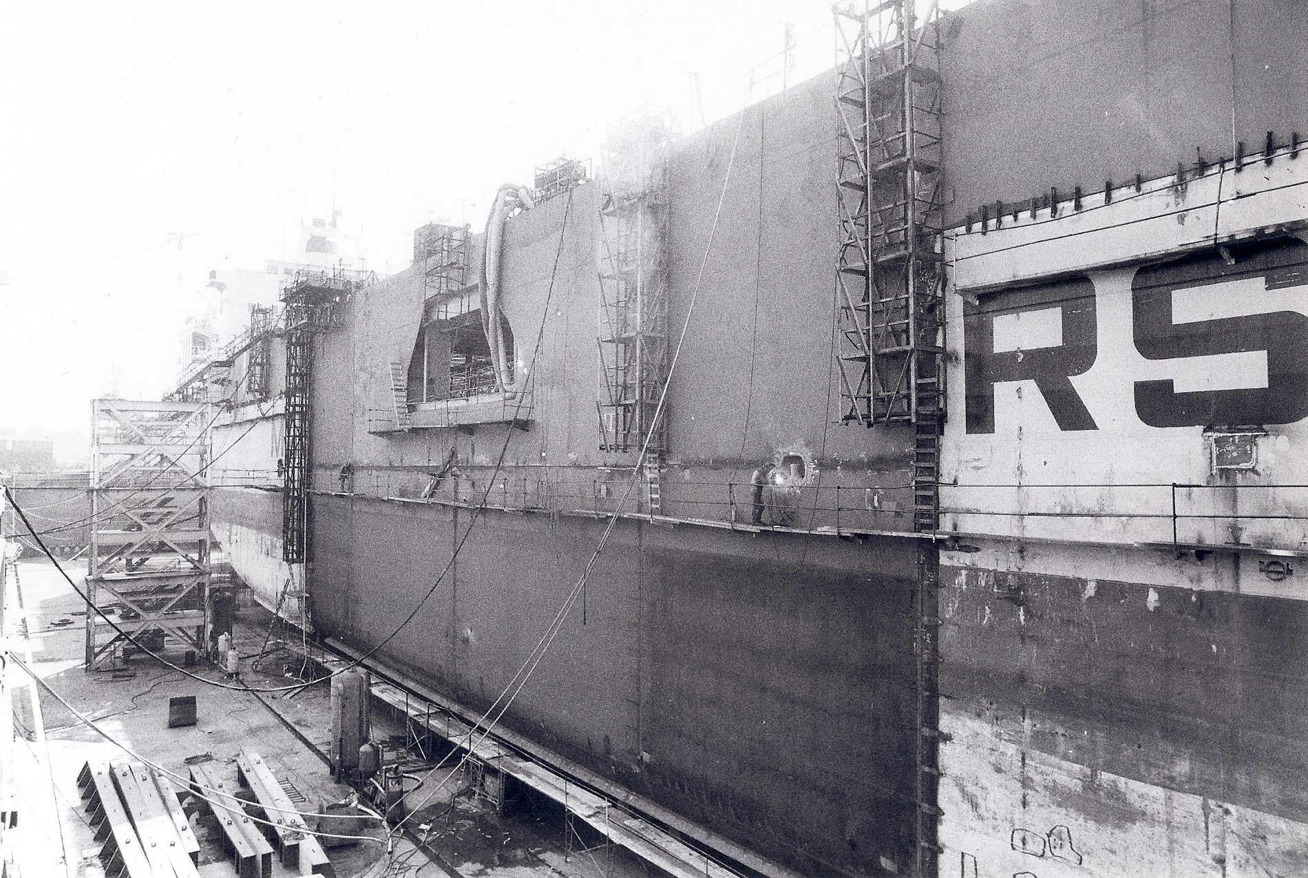 The Bethlehem Baltimore yards’ reputation and experience for this type of work was surely an advantage that helped the Sparrows Point yard win a $600 million contract in the early 1980s to convert three commercial cargo carriers into military vessels. This project involved the conversion of three roll-on/roll off ships (RO/ROs) previously owned by the global logistics company Maersk. They were converted to Maritime Prepositioning Ships for the U.S. Navy’s Sealift Command Rapid Deployment Force. The major elements of the conversion included adding a 157’ midbody, a second deck house, and a helicopter platform. During the multi-year contract that began in 1982, the former Maersk Estelle, Emma and Evelyn were converted to the CPL Louis J, Hauge, Jr., the PFC James Anderson, Jr., and the PVT Harry Fisher respectively.